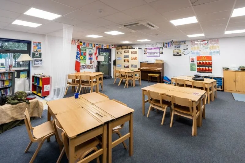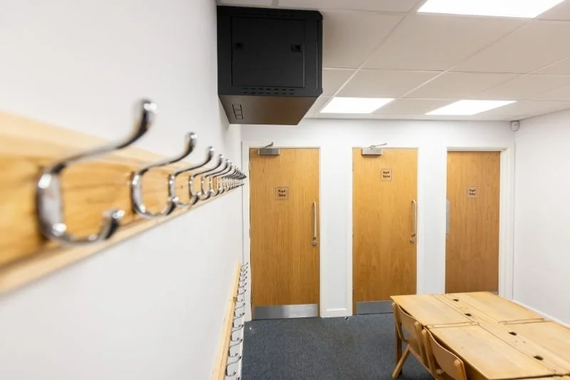 Delighted key stage 2 age pupils, in years 5 and 6 have two bright new classrooms and toilets to DfE standards, with level access at the sides, teaching sinks and full air conditioning for optimum teaching and learning.